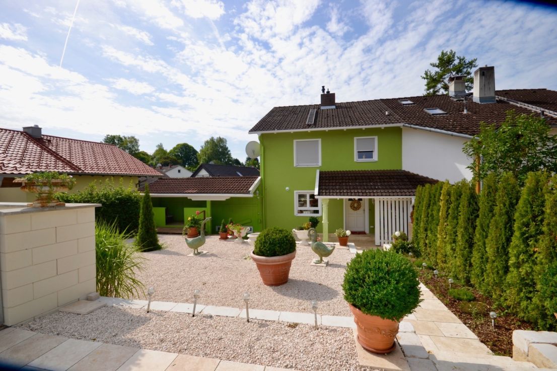 Durch die Hanglage ist eine Einliegerwohnung mit viel Tageslicht und separatem Zugang entstanden. Eine Einbauküche mit Kochinsel und modernsten Elektrogeräten findet man im EG. Übergangslos kommt man in den Ess- und Wohnbereich, der mit einem sehr schönen Kaminofen kuschlige Wärme an kalten Tagen zaubert. Im OG sind 3 Schlafzimmer und ein modernes Duschbad untergebracht. Aus dem neu ausgebauten Dachstudio wurde eine Wohnlandschaft mit integriertem Badezimmer, das sowohl als Schlafzimmer oder Au-Pair Zimmer genutzt werden kann. Der Garten ist wunderschön und pflegeleicht angelegt. Das Haus wird mit einer modernen Gasheizung beheizt.